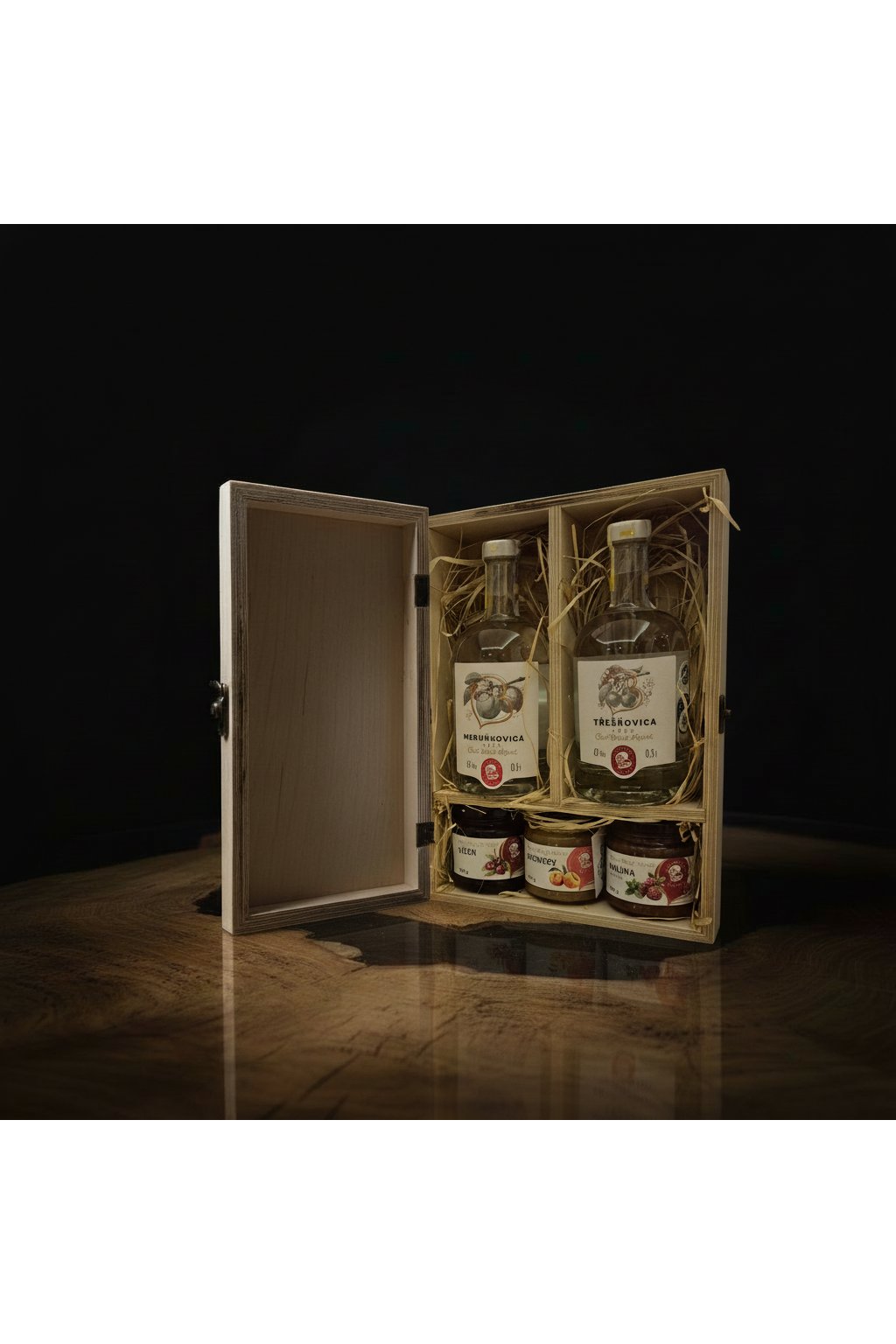 Tato dárková kazeta je sestavena pro ty, kteří chtějí darovat to nejlepší z našeho ekosadu v Bílých Karpatech. Spojuje v sobě silné ovocné destiláty a poctivé džemy z vlastního ovoce, pěstovaného a zpracovaného s respektem k přírodě a tradičnímu řemeslu.