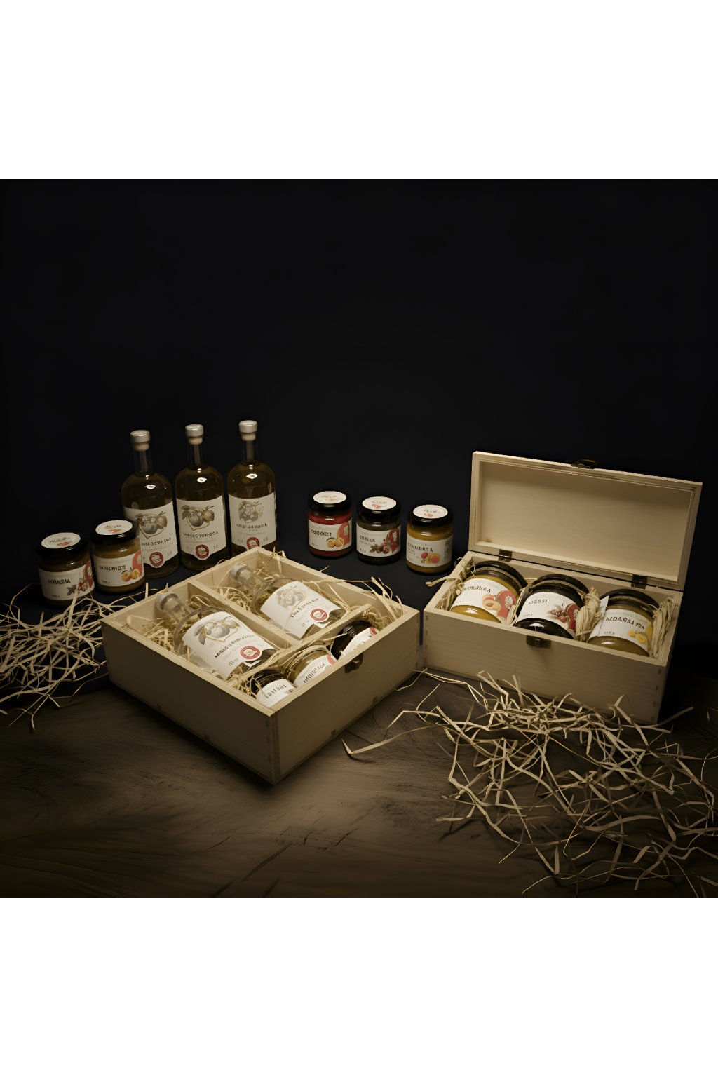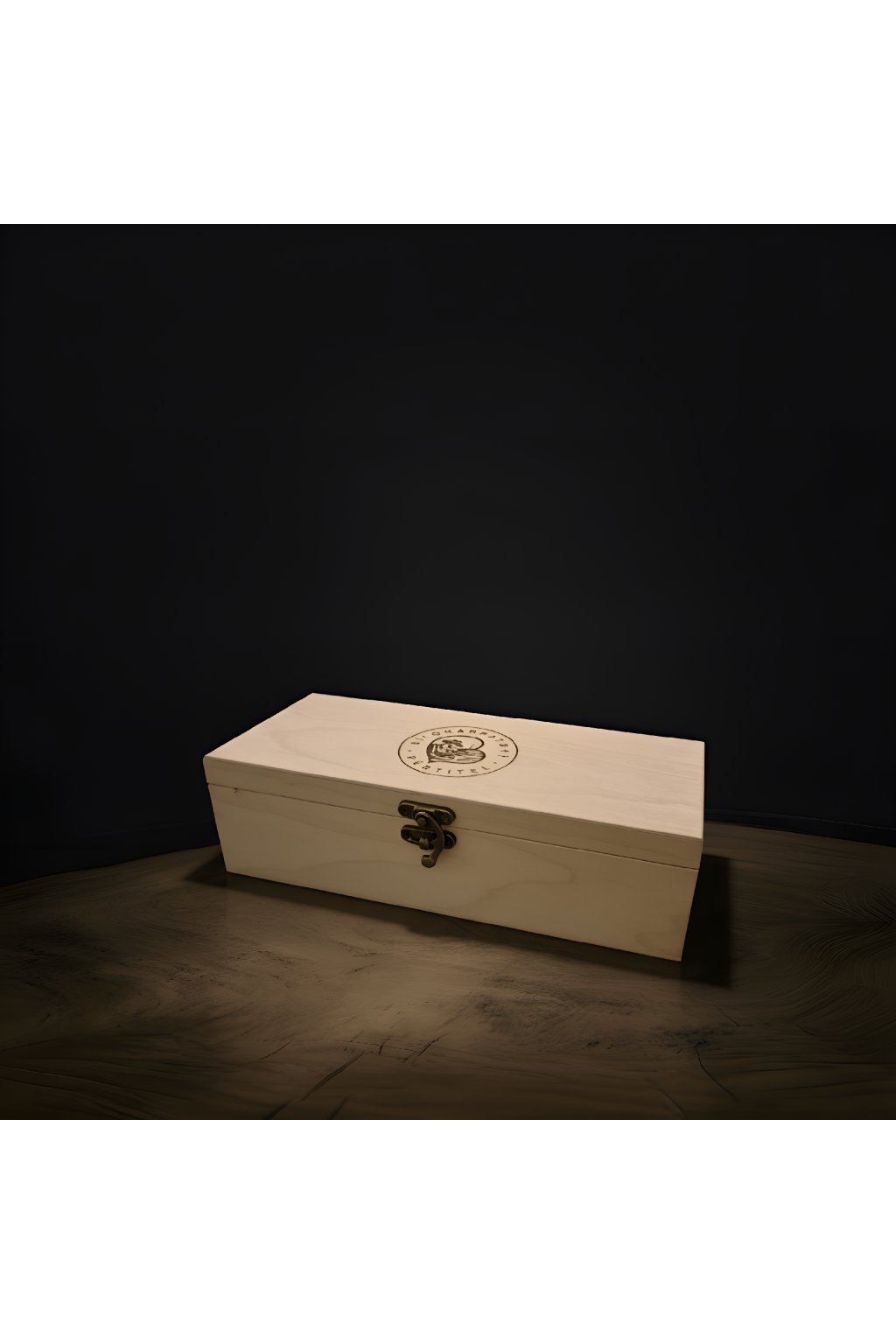 Součástí balení je ručně vyrobená dřevěná krabička, která dává celému produktu punc výjimečnosti. Každý kus je originál a slouží jako hotový dárkový obal – není potřeba nic dalšího řešit. Kazeta se hodí jako dárek k významným příležitostem, pro znalce destilátů i jako reprezentativní pozornost.