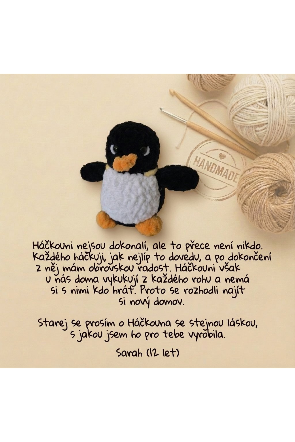 Háčkovaná plyšová hračka - Tučňák 13cm